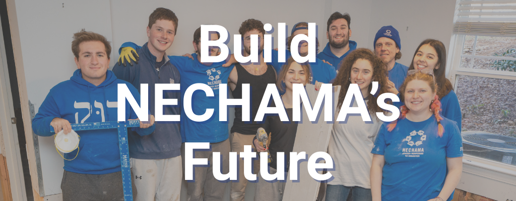 Will you help build NECHAMA’s future by donating today? Your contribution provides comfort to survivors of natural disasters, tangibly fuels our vehicles, and supports Jewish continuity in 2026 and beyond.