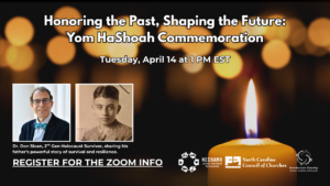 Lastly, we are honored to host a Yom HaShoah (Holocaust Remembrance Day) commemoration alongside the Henderson County Social Justice Network. This webinar will provide a platform to uplift survivor voices and inspire future generations to stand against hatred and injustice.